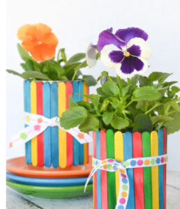 IMG_8318 Photo is an example image of colored popsicle stick flower planter we’ll be making for our Story Time craft on Saturday.